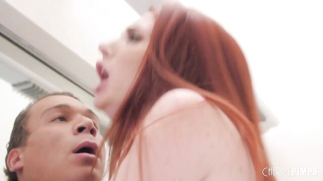 Description: Redheaded Aria knows that Rex has something rock hard and ready for her. Surprise! It’s his big cock! She grabs hold of it right away, stroking it with her delicate hands as he kisses her deeply. She’s ready to make some moves for pleasure, so she bends down to get a taste of that hard cock. She slobbers all over, getting him lubed up for an easy slide into her lips. It isn’t long until he’s ready to strip down this beauty and revel in that shaved pussy. He gets a taste while she moans loudly on the bathroom counter. It isn’t long until she’s ready to sit on his cock and watch themselves with delight as they fuck, in the mirror.