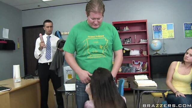 Description:During Amy's class one of the students pretends to have his dick caught in his zipper. When Amy tries to help, the school's dean walks in just as she is in this compromising position. The dean tells Amy that if she's going to behave inappropriately in his school, she's going to have to go all the way.