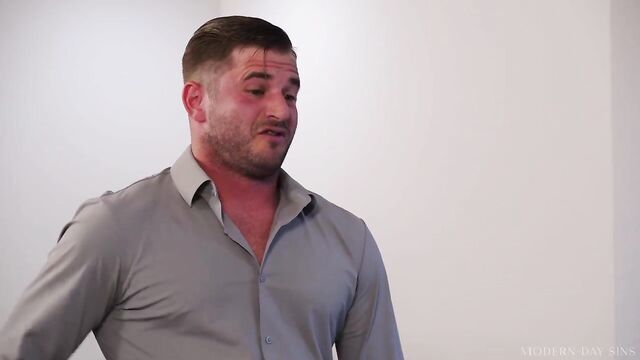Description:A cleaner, Kenna James, and a janitor, Dante Colle, are tidying an office after the other employees have left... but then they finally decide to give in to their mutual attraction. But as they're having sex, they hear someone coming. Dante hides under the desk, and Kenna sits behind the desk to hide that she's pantsless.An office worker, Nathan Bronson, then enters the room to get some extra work done. He's surprised to find Kenna sitting at his desk, and when he catches Dante hiding, he realizes what Kenna and Dante are up to... but to their surprise, he wants to join in. A raunchy threesome ensues, including Kenna getting spitroasted.