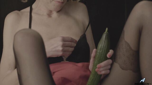 Description:Do you want hot mama Peggy get busy in the kitchen? She inspects her veggies to find the one that will meet her needs the best. Sinking to the floor, she drops her robe, snaps open her bra, and puts her hands to work fondling her breasts to make her bare cunt nice and wet.
