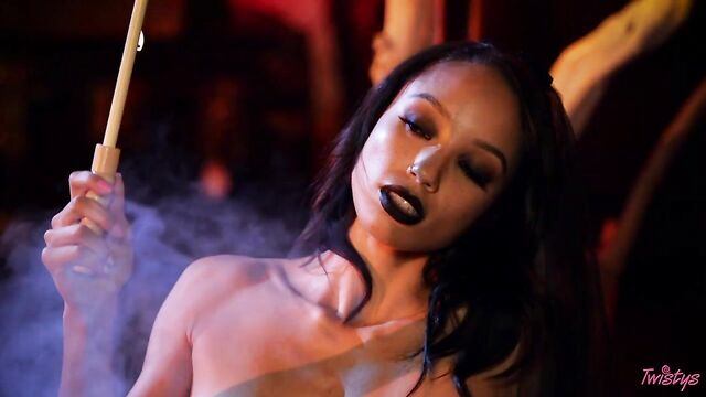 Description: Your October Treat of the Month is a little spooky but very sweet! Alexis Tae brings some supernatural sex appeal as she does a steamy striptease in all black, spanking her tight booty with a lace fan. Alexis keeps the heat going with a hot tease in lacy lingerie and a filmy black veil, undulating her hot body for you. Finally, Alexis casts a spell as a sexy witch on her throne, taking off her clothes and playing with her enchanting slender body. This sultry seductress caresses her clit and slides her fingers into her pussy, and she's got a naughty twist: hot candle wax that she drips over her perfect skin before making herself cum!