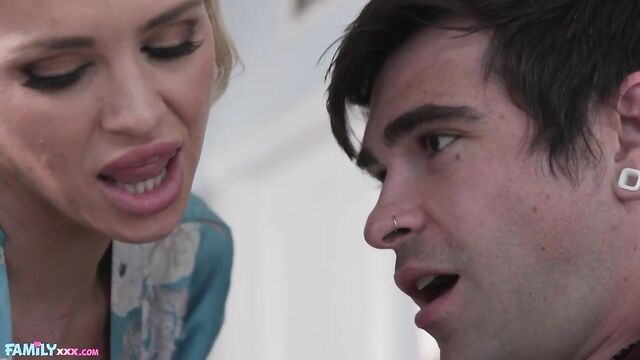 Description:Salacious hot blonde MILF stepmom Charli Phoenix has come across her stepson Lucky taking care of one of his urges. Charli, being very impressed with her stepson's manhood, decides to step in and give him a few pointers on his strokes in the game, and quick learner Lucky covers all her pretty face wishes!