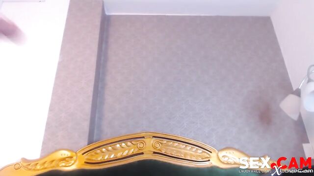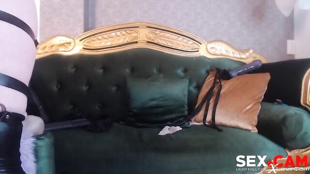 Gorgeous solo on the vintage couch with a big-boobed blonde