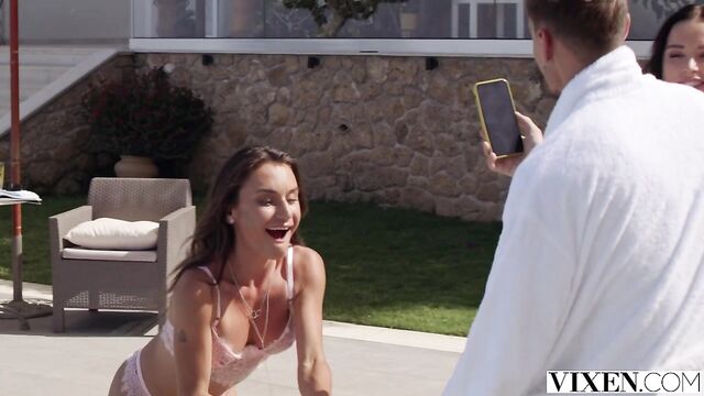 Description: Have you ever had a threesome? Maybe, maybe not. Have you ever had a close call? Of course, you have. Lana and Milena seem determined to get a guy in trouble, but if he can prevent his wife from finding out he has two sexy girls prowling around him in lingerie, he can experience pleasures the likes of which most men can only dream.