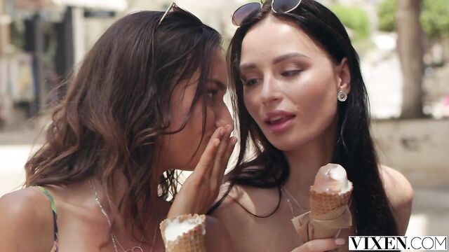 Cuties Milena Ray and Lana Roy share a pretty massive dick