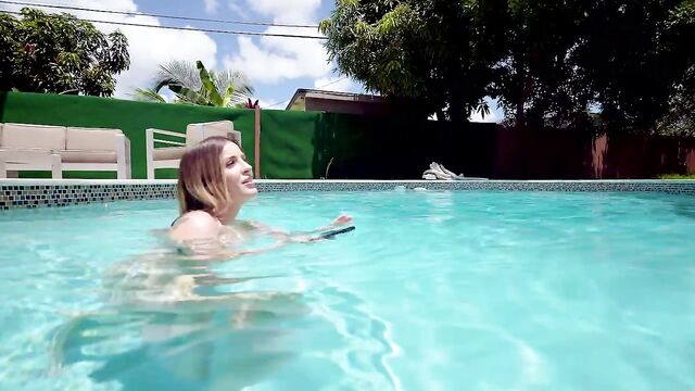 Description: Marica Chanelle figures out her phone is waterproof and commissions her friend Duncan Saint to shoot some videos of her underwater. She wastes no time letting her big tits loose to float around freely as he's filming her. Eventually they dry off together and she asks him to lotion up her big juicy jugs. He politely rubs lotion on her enormous boobs and then proceeds to lotion up her shoulders. She is willing to fuck him after hearing he recently broke up with his girlfriend. They go inside and fuck in the living room. She wants his big dick in her ass. They fuck hard. She rides his cock. He obviously cums on her face.
