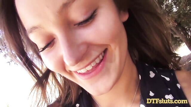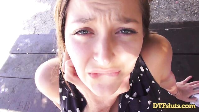 Description: Dani Daniels takes a day trip to see some nature and trees, and whatever else you see in a park that doesn't have swing sets. She brings along her friend, and they start fucking. Then some asshole tourist interrupts them. Dani is drenching wet and is super disappointed that she doesn’t get to have some dick at that very moment. So, they go somewhere else -- away from the beaten path—to keep fucking. Dani wants a law that lets people have sex wherever they please, if only that were the case, Dani, like some ancient Greek society, if only. By some benches under a tree, Dani brings out her friends’ cock and jerks him off as she rubs her pussy. She pulls his cock into her pussy and she giggles as he enters her throbbing wet pussy, her pussy feeling like warm macaroni and cheese. She gasps and moans lightly as he goes in and out of her leaving his cock looking like a Krispy Kreme glazed donut. As he fucks Dani harder, he begins to choke her, and she gags and moans with every stroke he gives her. She begs him for more as he slaps her face, warning her that it’s the last of dick she’ll get before they get arrested. Dani convinces him to keep fucking her next to the highway with her ass in plain view for all to see, she shouts and moans as he fucks her doggystyle on the picnic bench, the excitement of public sex makes Dani wetter and hornier, barely being able to keep herself up as the pleasure makes her body weak. They hike down to a more secluded area where they for sure won’t be caught and arrested. By a fence, Dani gulps down her friends’ cock until its left shiny and gleaming in the sun from her saliva. She backs her ass onto his cock, and he fucks her pussy doggystle, standing and getting fucked Dani’s legs almost buckle, it feels too fucking good getting every inch of his cock in her. She gets on her knees to lick her pussy juice off his cock, but he pulls her up from her hair and lifts her legs and fucks her standing up almost knocking over the fence they lean against. The two end their public-fuck-a-thon with cum in the back of Dani's throat.
