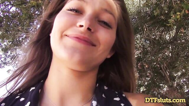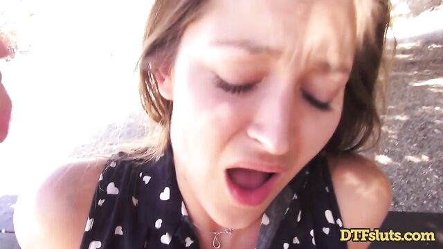 Description:Dani Daniels takes a day trip to see some nature and trees, and whatever else you see in a park that doesn't have swing sets. She brings along her friend, and they start fucking. Then some asshole tourist interrupts them. Dani is drenching wet and is super disappointed that she doesn’t get to have some dick at that very moment. So, they go somewhere else -- away from the beaten path—to keep fucking. Dani wants a law that lets people have sex wherever they please, if only that were the case, Dani, like some ancient Greek society, if only. By some benches under a tree, Dani brings out her friends’ cock and jerks him off as she rubs her pussy. She pulls his cock into her pussy and she giggles as he enters her throbbing wet pussy, her pussy feeling like warm macaroni and cheese. She gasps and moans lightly as he goes in and out of her leaving his cock looking like a Krispy Kreme glazed donut. As he fucks Dani harder, he begins to choke her, and she gags and moans with every stroke he gives her. She begs him for more as he slaps her face, warning her that it’s the last of dick she’ll get before they get arrested. Dani convinces him to keep fucking her next to the highway with her ass in plain view for all to see, she shouts and moans as he fucks her doggystyle on the picnic bench, the excitement of public sex makes Dani wetter and hornier, barely being able to keep herself up as the pleasure makes her body weak. They hike down to a more secluded area where they for sure won’t be caught and arrested. By a fence, Dani gulps down her friends’ cock until its left shiny and gleaming in the sun from her saliva. She backs her ass onto his cock, and he fucks her pussy doggystle, standing and getting fucked Dani’s legs almost buckle, it feels too fucking good getting every inch of his cock in her. She gets on her knees to lick her pussy juice off his cock, but he pulls her up from her hair and lifts her legs and fucks her standing up almost knocking over the fence they lean against. The two end their public-fuck-a-thon with cum in the back of Dani's throat.