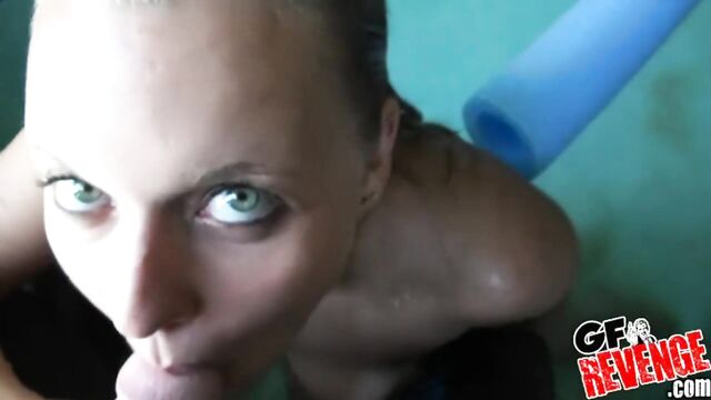 Description:This GF Revenge video started out in the best possible way, with a smoking hot blonde in a bikini. And from there, it just got better cause our beautiful and busty blonde ex took it upon herself to flash the camera her big luscious tits, as she came out of the pool dripping wet. But once the party started, it wasn't just her bikini that was wet. This babe dropped on all fours and started blowing her boyfriend until she was horny as hell and begging for cock. And did he ever give it to her. They went inside, he turned her around, and worked that pussy in doggy style until she was shouting out in ecstasy. And like every good loving BF, he finished by blowing his load on her face. Wow, this hot blonde really did know how to hide the pole!