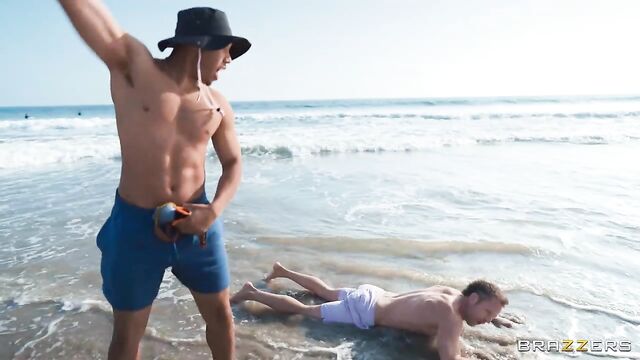 Description:Big titty babe Angela White fulfills everyone’s wet fantasies as a life guard, bouncing down the sandy beach and protecting the locals. This quickly gets the attention of Scott Nails. Scott, smitten, hatches a plan to fake a drowning for a little lip lock with Angela. Angela heroically saves him in a sexy slow-motion rescue. Scott’s fake drowning turns real and he is quickly whisked away into a steamy dream sequence in which he gets to fuck his dream girl and cum all over her sexy breasts.