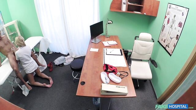 Description:I was glad I came into work this morning when my next patient walked in, he was a young man with a great body and I was hoping to get a good look. He complained about a shoulder injury while working out in the gym, after taking some of his details I asked him to sit on the examination table, where I began running my hands over his strong big arms, I could tell he was enjoying my attention so I then asked him to remove all his clothes. Then I gently run my fingers up over his legs slowly working my way to the top, as I lifted his underwear he lightly gasped as I held his cock in my hand, when I arched my back leaned over, and slowly inched his cock into my wet warm mouth. I could feel his pleasure trembling through his cock, and with his sexy muscles tensing with each slip of my tongue, I wanted to feel him inside now more than ever.