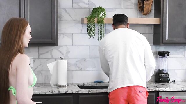 Description:Stepdads Clarke Kent and Richard Glaze are hanging out with their stepdaughters Harley Love and Lana Smalls. The stepdads BBQ together while complaining about how their stepdaughters never listen to them. They decide to each take the other's stepdaughter and try to teach them how to barbeque. Meanwhile, Harley and Lana challenge each other to fuck their stepdads unbeknownst to Clarke and Richard.Later, the girls have changed into bikinis to hang out by the pool. Richard stops them, explaining to the girls that they're going to help grill. He keeps Harley outside to show her how to use the barbeque while Clarke takes Lana inside to show her how to make sauce from scratch. Soon both girls have maneuvered their friends' stepdad into receiving a lusty BJ.Richard and Harley come back inside and catch Clarke and Lana in the act. After the smallest bit of faked surprise, the pretense comes off and they all enjoy a foursome. Lana takes Clark on her back while Harley rides Richard in reverse cowgirl. Both girls get on their knees for a doggy style pussy pounding and then Lana mounts Clarke for some cowgirl fun while Harley gets on her back to enjoy every inch of Richard's fuck stick. They keep it up until Richard has delivered a creampie for Harley to enjoy and Clarke has given Lana the same treat.