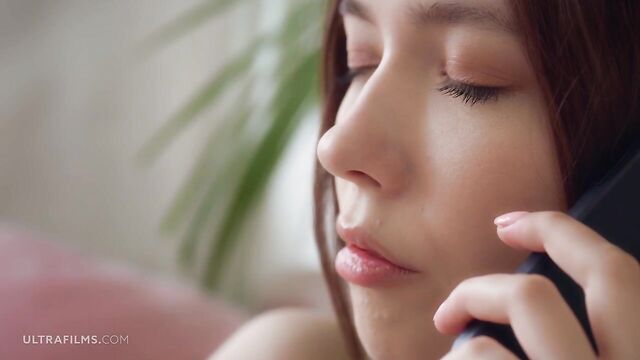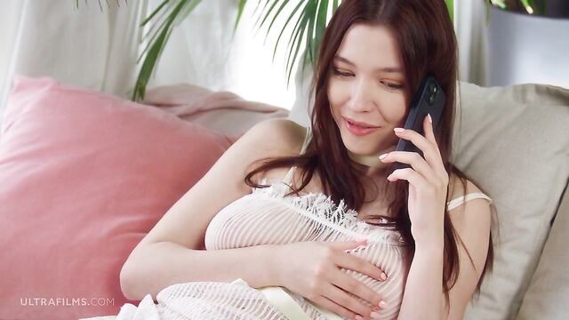 Bitchy soloing chick Mila Azul nicely plays with her shaved pussy