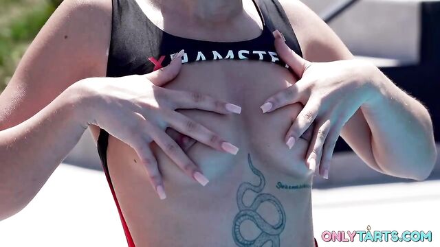 Description: Nata Ocean and her bestie Asandra Dewy are getting ready for xHamster competition and trying on their outfits at Nata's stepdad's house. It was really nice of him to let his stepdaughter and her friend come over and have the house and the pool all to themselves where he can see them chilling and enjoying summer. He wasn't exactly looking forward to sharing his privacy with them. At least until he saw them in mind blowing bikinis. They come closer to say hello and ask if their outfits are good enough. They smile when they see his jaw dropping. They love his reaction and are ready to actually do what they both want. No touching this time, but they don't mind Nata's stepdad watching them stripping each other while he can throb his dick. That sounds like a perfect summer morning. The girls turn around to show him their asses. They help each other out of their bikinis, touching one another, caressing smooth skin, perky breasts and firm ass cheeks. Standing side by side, they watch stepdad staring at them with lust. They encourage him to take out his cock and start throbbing it. Both girls touch their pussies, rubbing their fingers on wet lips and sliding them into their horny twats. Nata can see how much her stepdad likes their spontaneous show and she cums with her friend while he shoots his load.