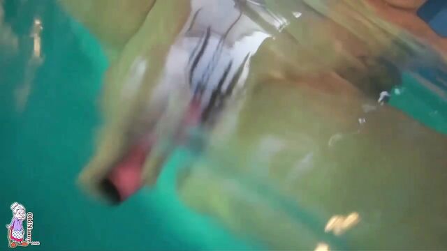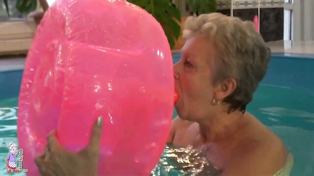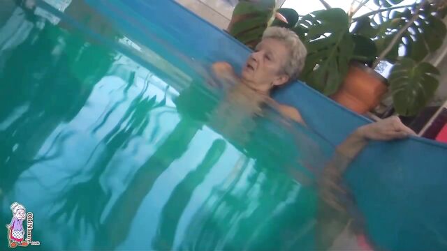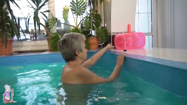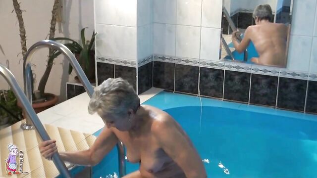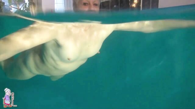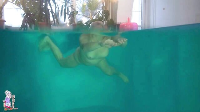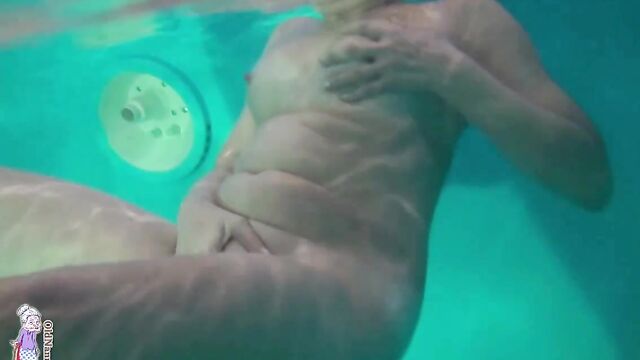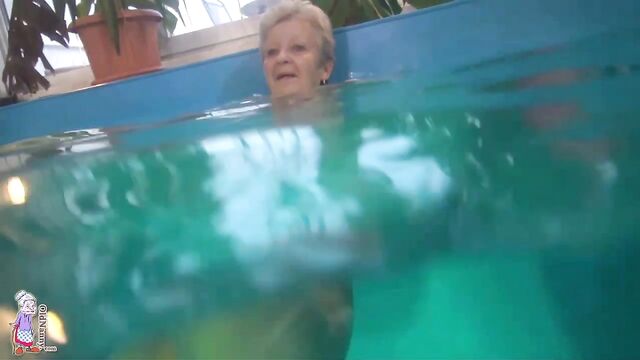 Gorgeous mature blonde Jitka is touching her shaved pussy in the pool