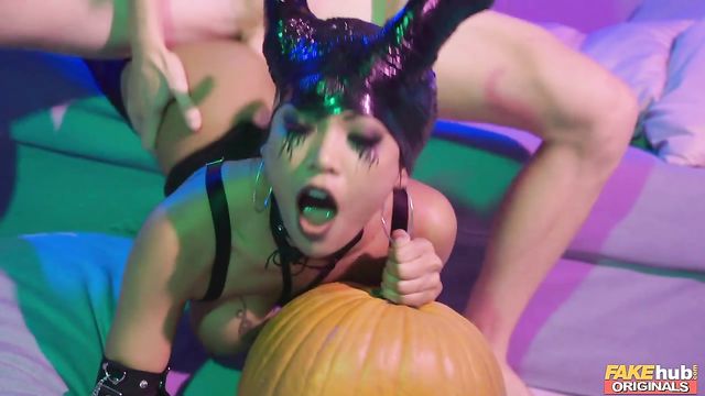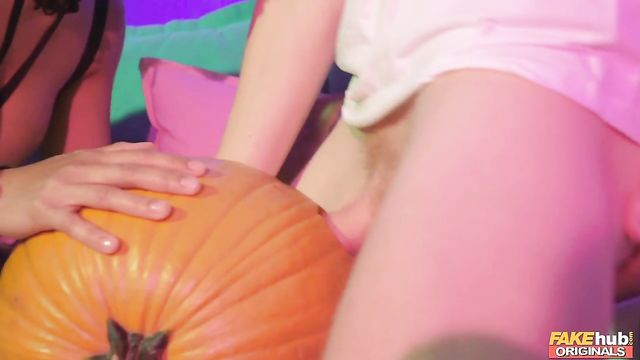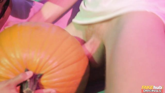 Description: Sneaky Ron Johnny Fox hears music and sees flashing lights in the hostel where he is staying. While other guests are distracted by the party, Ron sneaks out and steals a pumpkin. Carving a hole into it, Ron starts to fuck the pumpkin, thrusting with gusto! Polly Pons, a party goer, walks in on this. When she immediately bails from the room, Ron shrugs and continues, but Polly, intrigued, comes back in quietly behind him. The busty slut helps Ron thrust, then strokes his cock, sucking it before putting it back in the pumpkin! Polly sits on the pumpkin doggystyle so Ron take care turns fucking the pumpkin and then her pierced pussy, then goes the same in the missionary position. Finally ditching the pumpkin, Polly gets pounded in the spoon position, then rides Ron's cock until he cums on her ass. Immediately hard for round two, Ron keeps fucking Polly's pussy until he pulls out to drop a second load on her face and tits!