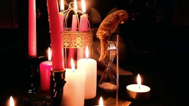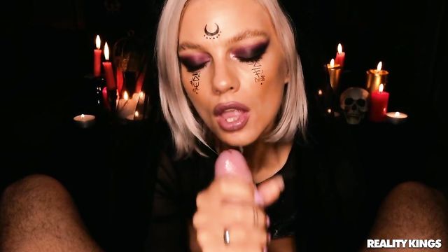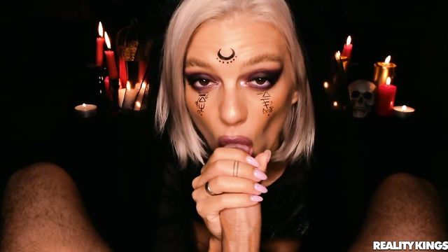 Description:Witchy woman OwlCrystal has some sex magic planned for All Hallows' Eve as she plays with her pussy among her candles and magical items. She does a naughty tease, showing you the plug that's deep in her slender ass, dripping hot candle wax on her tits, and enticing her lover Carassio to join her. She takes his thick cock in her ass and rides him in her witch's den, then seals her spell with his cum all over her face!