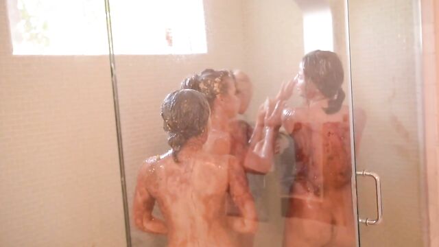 Shower sex play with hot babes Sarah Vandella and Hope Howell