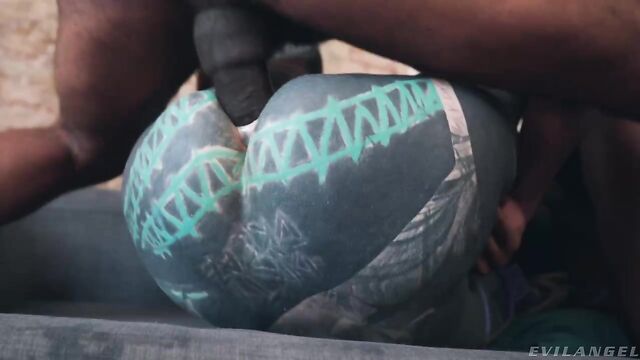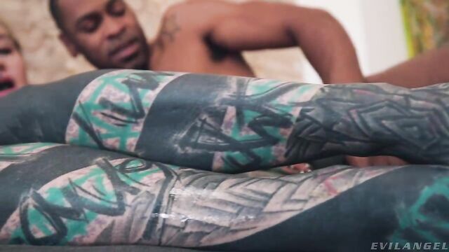 Inked white model Anuskatzz rammed by huge black dicks in DP