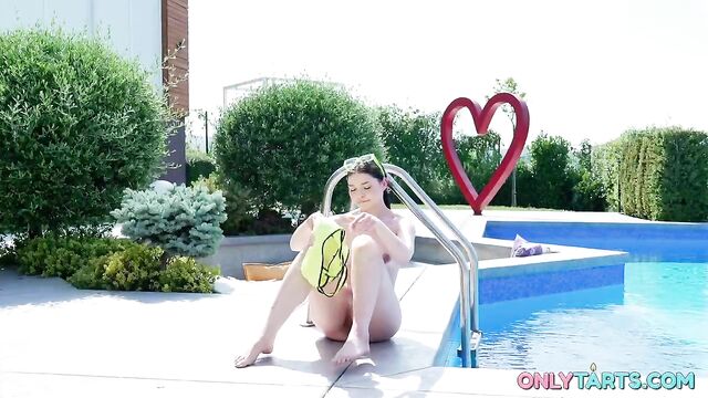 Soloing hottie Virgin Butterfly knows how to have fun by the pool