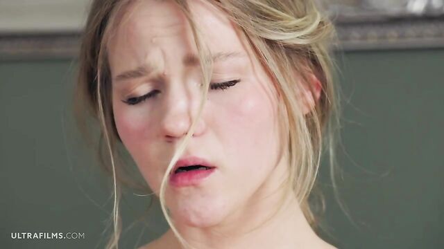 Sweetheart Diana Heaven shows off her naked body on the grey couch