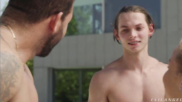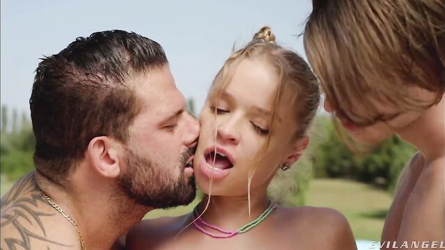 Outdoor 3some with a flexible young blonde Alexa Flexy and two men