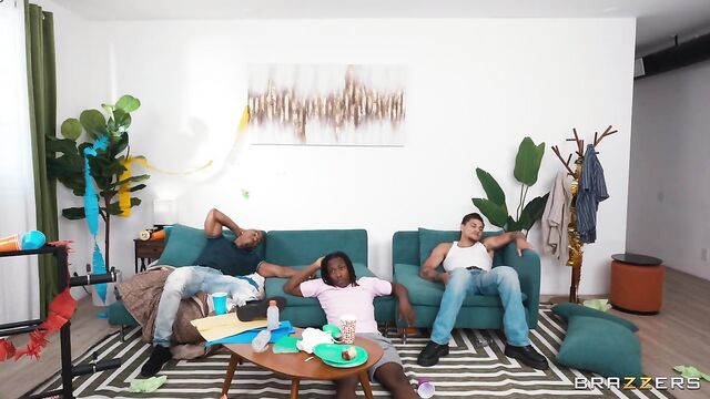 Description:The morning after a big frat party, a couple female partygoers are still hanging around but won't fuck the hungover frat dudes. The dudes’ flirty friend Liz Jordan kicks them out and offers herself up instead. What a good friend!