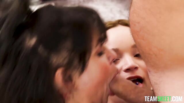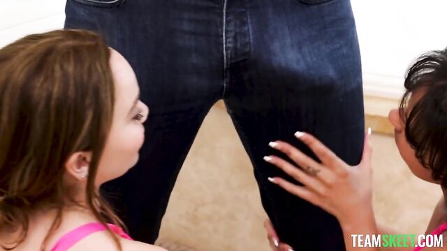 Description:I knew skipping school was fun, but I didn't realize how much until I did it with my best friend. We were finally home alone, and nobody could stop us from doing anything we wanted to do, like dancing all day, ordering 100 pizzas, or grabbing each other's tits and making out. We were feeling so horny that we even decided to wear my mom's tiny and transparent onesies, cover each other in oil, and take a bath together. When things were getting steamier, my stepdad got home! We didn't want to get into trouble, so we invited him to join the fun. Turns out, three is better than two and his dick tasted just as good as my best friend's pussy. We are definitely skipping school tomorrow again.