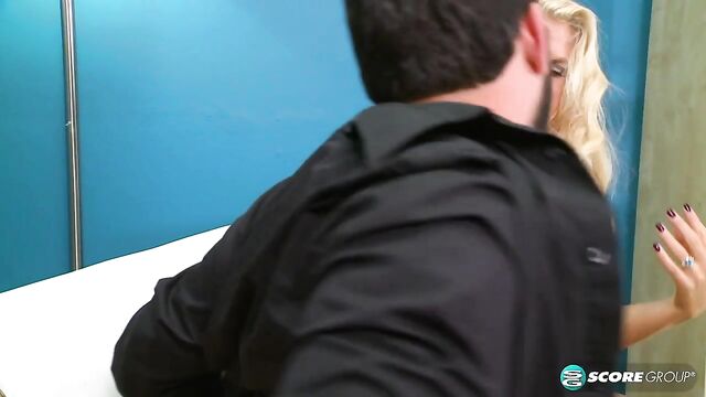 Long-haired mature blonde Samantha Ray is sucking with love
