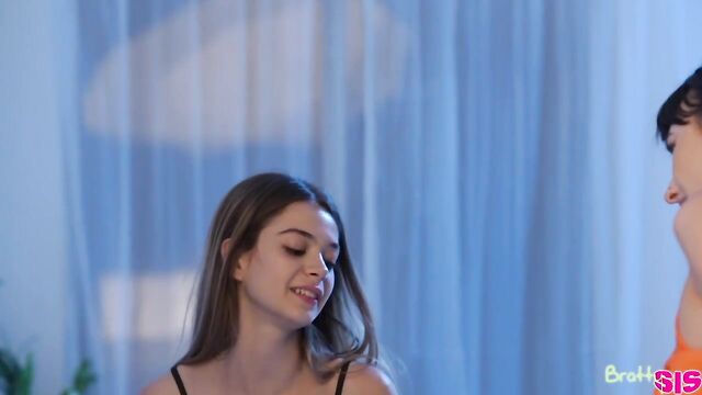 Description:Dressed in their Halloween sexiest, Lana Smalls and her friend Molly Little hand out candy to trick or treaters. Lana's stepbrother, Victor Ray, wears a costume of his own as he creeps on them. Eventually he tells the girls he'll never leave and he's going to fuck them. They don't believe him, telling him that they're going to watch scary movies and there's no penis allowed.Later, the girls go to their movie night. Just as things are getting really tense, Victor comes in and frightens them. Later, when the girls go to bed, Victor comes in and tickles Lana with a fake spider. Lana wakes up and sees Victor, and within a minute her panties are pulled aside and they're boning down on the bed as Lana tries to hold the moan.When Molly wakes up and realizes that the stepsibs are fucking, she's shocked but then into it. Lana offers to lick Molly's pussy, and soon it becomes a true threeway as Molly winds up riding Victor's tongue as Lana does her stepbro in cowgirl. Molly gets to enjoy Victor in doggy as she eats Lana out. Then she flips onto her back to take a dicking down on her back. After taking one last go with her stepbro's fuck stick on her back, Lana joins Molly so the girls can jerk Victor off to deliver a nice cum shot.