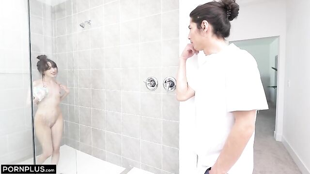Description: Stepbro creeps on his stepsis as she’s taking a shower. Instead of getting mad, she asks him to join her!