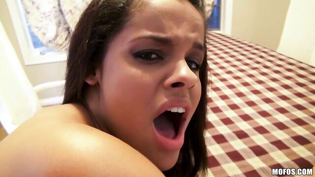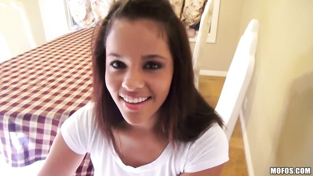 Aria Salazar swallows tasty cumshot load after hard doggy style sex