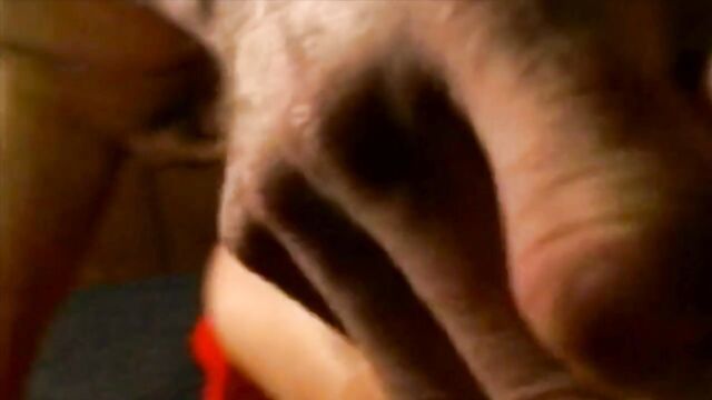 Description: Blonde squirts on his stiff cock and gets her face covered with semen.
