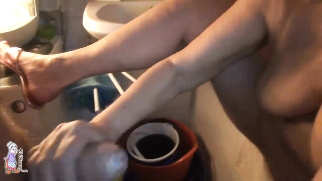 Mature chubby with big boobs Emmy plays with her wet hairy pussy