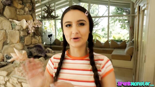 Legs spread wide scene with mystery Eliza Ibarra from Spank Monster