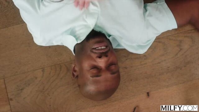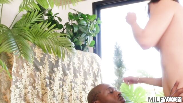 Hard dick-riding with a white model Angelina Moon and a black guy