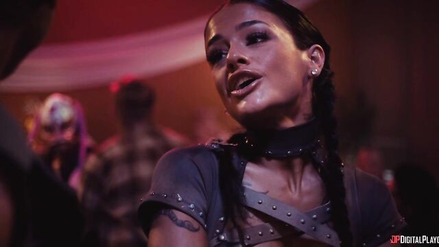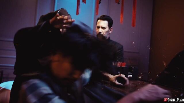 Description:Training under kung-fu master Miller Six, Sarah is soon fully recovered and stronger than ever, and she's got a wedding to ruin. With some backup from bikers Smoke and Christie (Yhivi), Sarah crashes her sister's nuptials and isn't put off by the guest list: the strongest criminal organizations in the city. They start a massive brawl, but when Christie faces off against masked, muscular Ridley (Jmac), a different type of sparks fly. She puts him down on his back and puts her tits in his face, then sucks his cock. Soon the hung hooligan is fucking her pussy and going deep in her ass. Meanwhile, Sarah's battled her way through the guests and sets her sights on the bride and groom's table...
