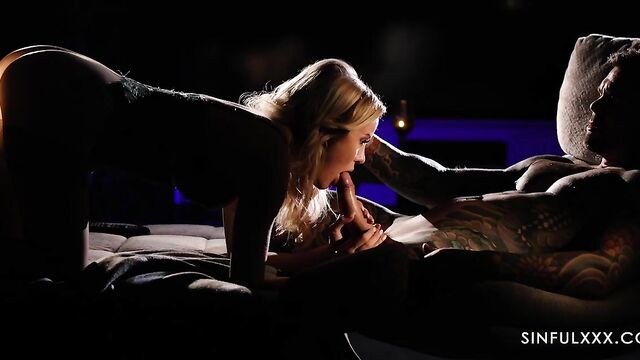 Description: When he’s glued to the screen, Maya decides it’s time to steal his attention. Switching off the movie, she unveils a tantalizing surprise that leaves him speechless.