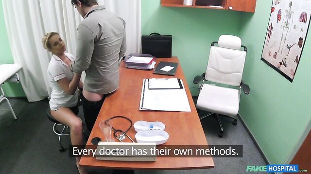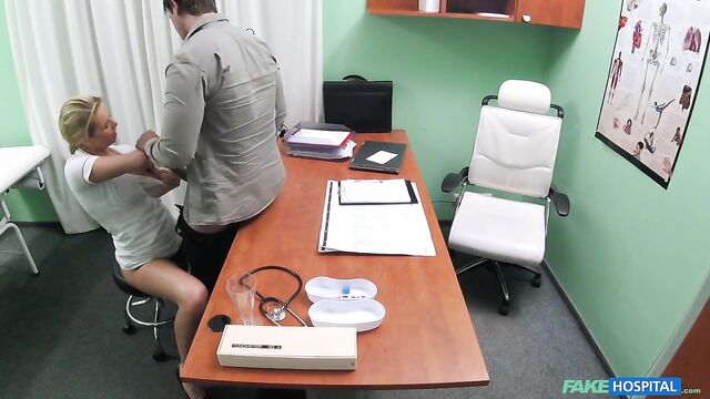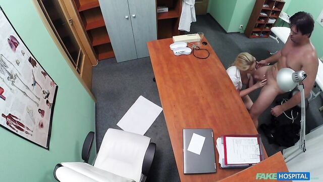 Description: The doctor was away and I was in his office ready to help any of his patients if I could. I was waiting patiently when a very handsome older gentleman walked into the office, asking to see the doctor. I explained that he was absent and that maybe I could help him. He seemed reluctant at first, stating that only the doctor could help him as had manly problems. I got him to sit down and it eventually turned out that he was a model agent who liked to fuck his beautiful models, but as he got older his confidence affected his performance, so he needed some pills to help him get an erection. We chatted for a while and I flirted outrageously with him. I love an older man and I was feeling so horny I decided to see if he was up for some fun. I suggested that instead of taking the pills maybe we could test it right there and then to see if he could get an erection. He seemed a little taken aback, but he had no erection issues as I leaned over the desk, pulled his cock and and began to wank it. He was soon groaning and after popping it in my hot mouth and giving him a tit wank, he was as hard as a diamond. He asked if we could fuck to see if he could maintain his erection without the pills and I was more then happy to oblige. He took me standing up and bent over the good doctors desk. His cock felt beautiful, tightly clamped in my pussy. My nerve endings began to tingle as he slid it in and out of me. This older gentlemen sure did know how to fuck and I had no idea why he needed these pills so badly. His stamina was great as he fucked me in a few positions all over the doctors desk. He fucked me with the skill and care only an older love knows. I had cum several times and the doctor was due back any minute, so I needed to see his cumshot. After pounding my pussy for a few more moments as I lay sprawled on the desk, he suddenly pulled out and shot his modest cumshot all over my pussy lips and stomach. I proved that you don't need pills to help you get your dick hard, you just need a hot, naughty nurse like myself.