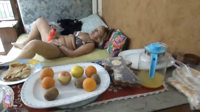 Stunning mature hottie with hairy pussy Emmy plays with a dildo
