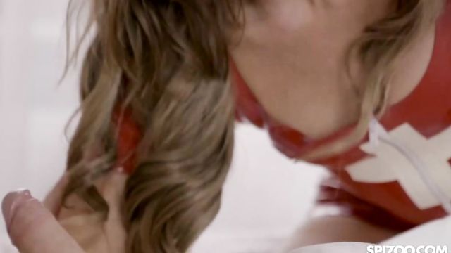Description:Sarah Sultry is a seductive hottie in a sexy red latex nurse costume. The gorgeous blonde has more than what it takes to treat her handsome patient, Michael Fly. Without wasting any time, the naughty caregiver starts giving Michael a sloppy blowjob. The sensual head makes Michael feel a lot better. He then returns the pleasure by giving Sarah an intense pussy licking. The horny duo can't resist the urge to be one any longer. Moans of delight fill the room as Michael bangs Sarah's bald pussy in missionary and doggystyle. Sarah's small natural tits gracefully bounce as she rides Michael's cock in reverse cowgirl. The naughty hottie tirelessly grinds on top of the horny lad before letting him cum all over her beautiful face.