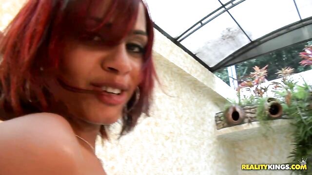 An awesome redhead Grazy Moreno nailed anally by the poolside