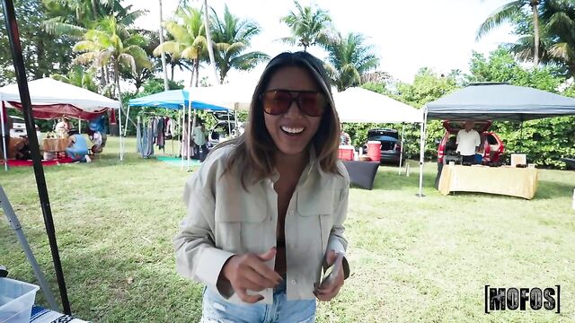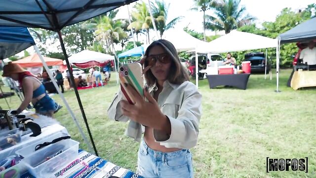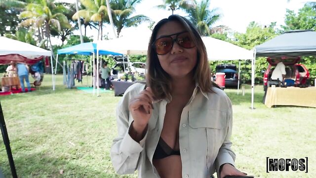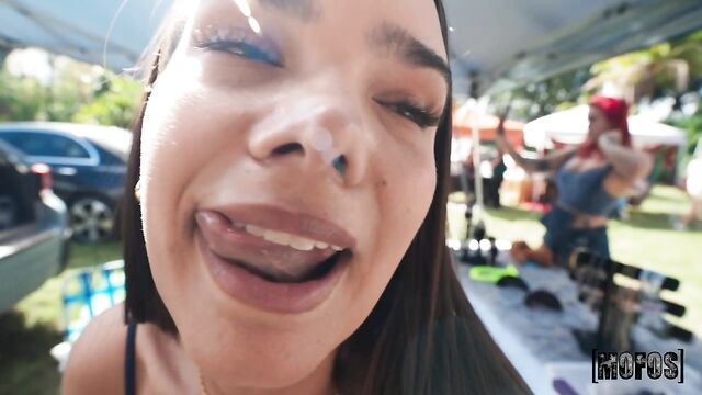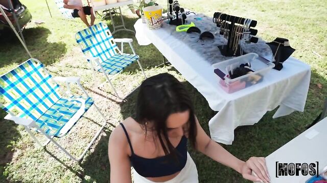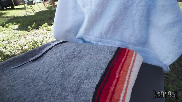 Curvy young chick with hairy pussy Ivy Ireland impaled outdoors