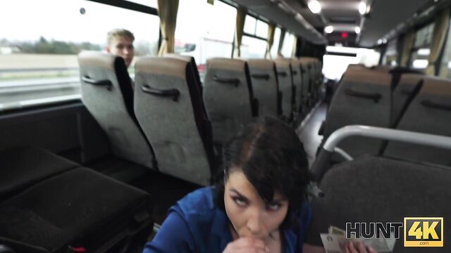 Bus sex in the cowgirl pose with a big-boobed brunette Federika