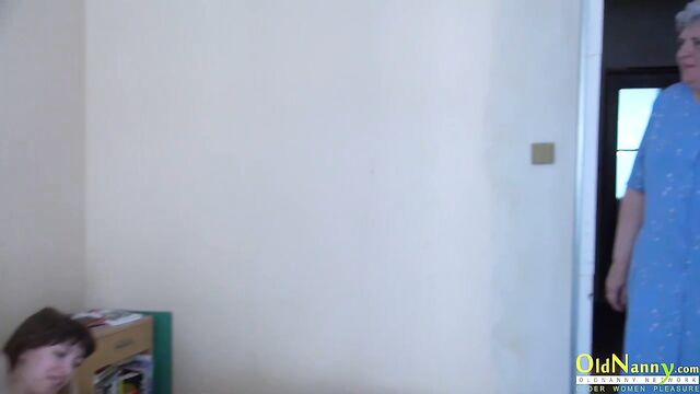 An old lady Gabi invited a young brunette for a nice double blowjob