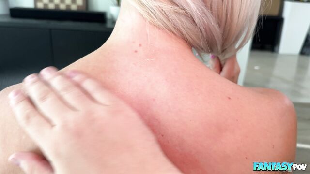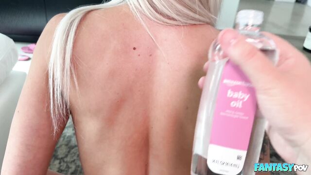 Description:In the sultry afternoon, you find yourself on the couch, the sun streaming through the window, casting a warm glow on the room. Your stepmom, (Mckala Noel), walks in, her blonde hair cascading over her shoulders, and her big tits barely contained in a tight white shirt. She's got a mischievous sparkle in her eye as she approaches, a bottle of oil in hand. "I need help with my back," she purrs, her voice dripping with suggestion. You can't resist, and as you start to rub the oil onto her smooth skin, her shirt slowly slips off, revealing her massive tits. She turns around, her eyes locked on yours, and you can't help but get hard as she guides your hands to her firm, perky tits. The room is filled with the scent of her desire, and you know this is just the beginning of a wild, steamy afternoon.