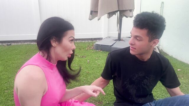Description: Nina has been so freaking horny lately. She decides to set a plan to get her stepson in bed once again. As we know, the way to a man's heart is food. So Nina sets up a sexy picnic for her stepson Alex. Things quickly heat up with blowjobs & pussy eating right on the front porch. This busty milf is about to give her stepson the ride of his life.