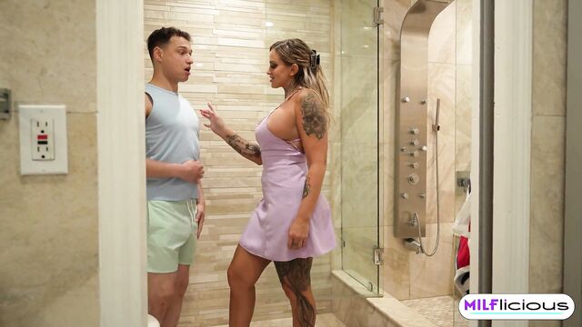 Description: Stephanie Love is a busy and hard working Stepmom. She cooks , She cleans and satisfies her mans needs always. She would love to get some alone time where she can chat with her friends, go shopping with her friends. Her husband gives her space. There is just one problem. Her stepson is horny as fuck. He watches her when she eats, when she cooks and even when she . Today he's got that look in his eye. He's horny for big tits and bouncy ass. I can't even take this phone call. Every now and then you've got to let your stepson sample the goodies. Johnny is the luckiest stepson on earth right now