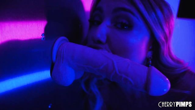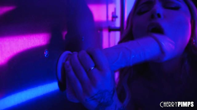Curly-haired babe Adria Rae is sucking her lovely rubber dildo