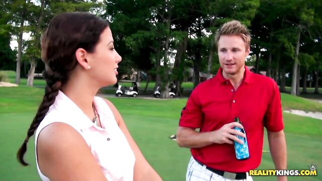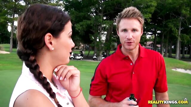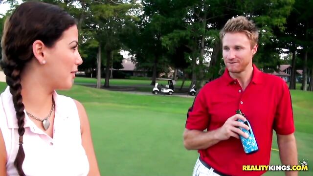 Description:Levi and I decided to get some R&R with Mr. Tee at the country club. When we got there, the attendant decided to set us up with a couple who had booked the same slot we did. At first Levi and I did not want to deal with anyone else but giving Adryana a once over changed our minds. We played for a while and we got to know the couple. Adryana let down her hair and really started pouring on the flirts and sexual advances towards Levi. I thought her hubby was going to be furious but instead he just laughed along and almost encouraged her more. She finally reminded to her husband how they both always wanted to try a threesome. I am positive his idea of a threesome was a little different than the situation we had going on, but he agreed as long as he could cash in his threesome experience at a later date. Levi dashed to the golf cart and floored it all the way to the country club locker rooms. Adryana handled two cocks like it was just another day for her and her sweet Latina ass had her hubby and Levi going crazy.